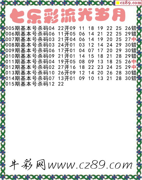 > 七乐彩2026015期流光岁月杀码图谜 10中3